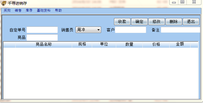 千寻进销存(单机版),是一款简易商品进销存管理系统, 用于商品流通企业日常经营管理,如商品采购,存货,和销售等环节。系统主要功能 有,采购订货 ,订货审核,采购收货,收货审核,商品库存调整,商品存货查询,销售,销售明细查询 等功能